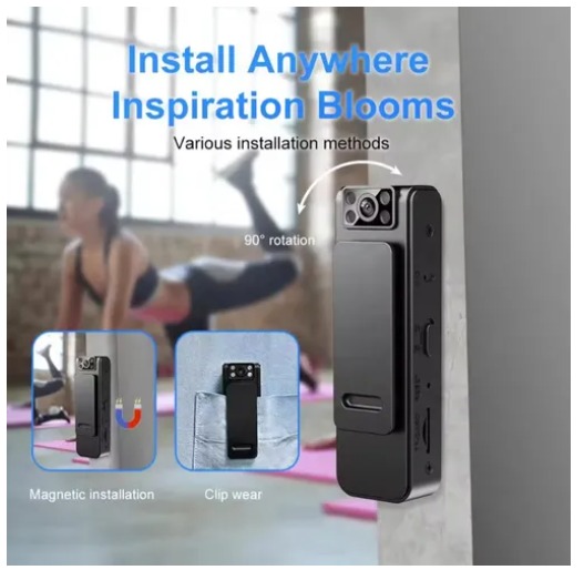 Nuestra mini cámara se puede ocultar fácilmente y colocarse en cualquier bolsillo de tu camisa o chaqueta. Puedes usarla en tu ropa o mantenerla tan mínima en tu bolsillo, escritorio o prácticamente en cualquier lugar discretamente para capturar una vista perfecta de todo sin que nadie se dé cuenta.