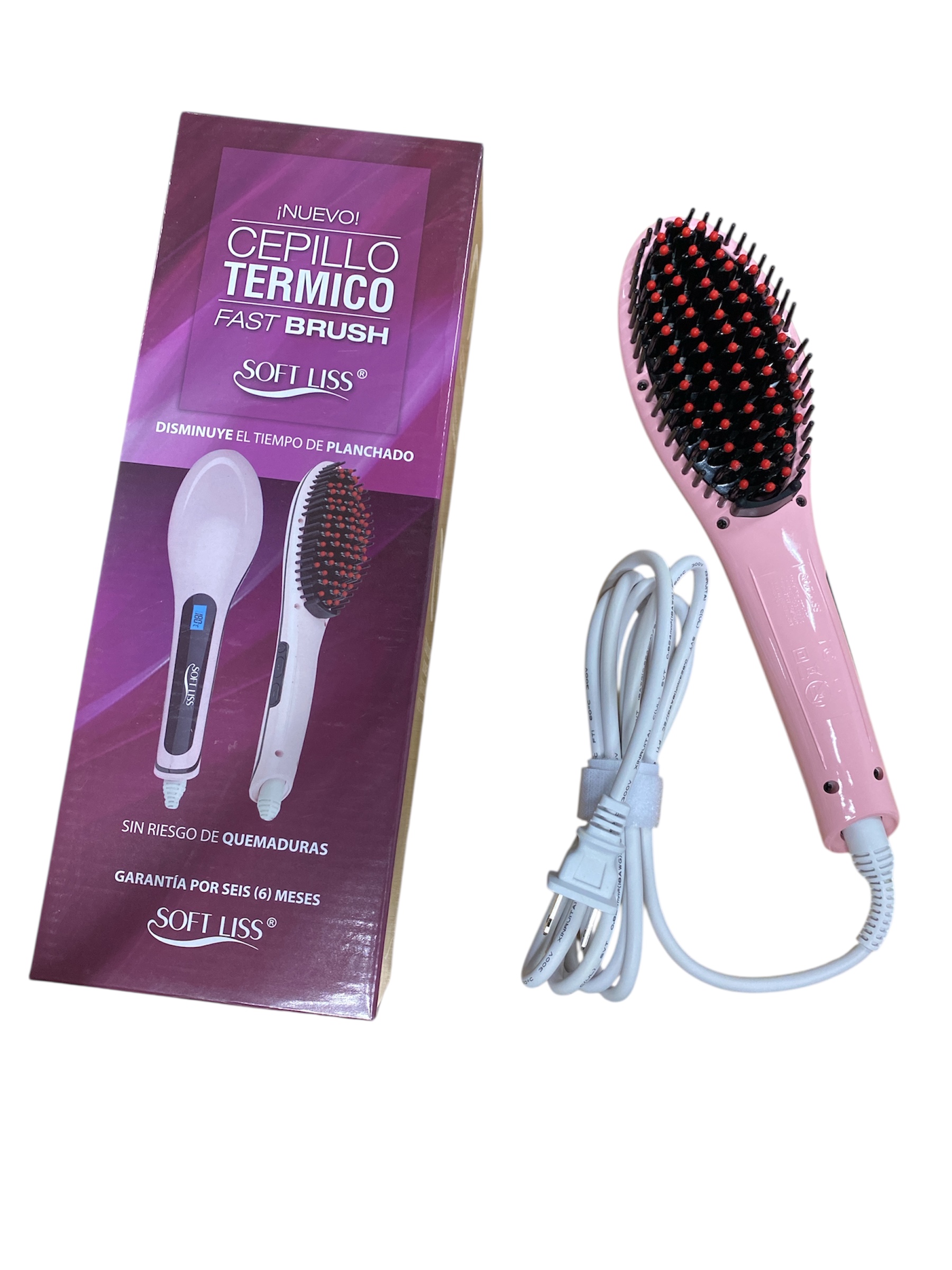 Simplifica tu rutina de belleza con el cepillo térmico alisador Soft Liss®. Diseñado para alisar y desenredar tu cabello al mismo tiempo, esta herramienta reduce significativamente el tiempo de peinado. Sus cerdas con punta de calor controlada te permiten alisar cada mechón de manera segura. Es ideal para un alisado rápido y sin esfuerzo, dejando tu cabello suave, brillante y sin frizz en minutos.