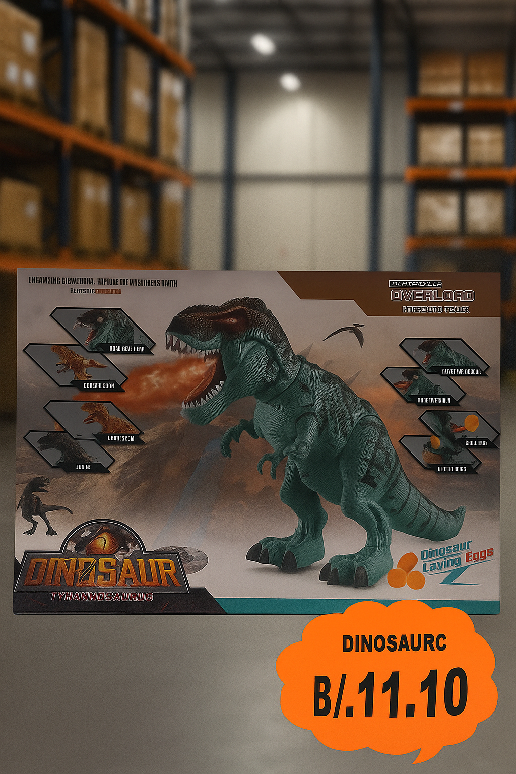 Este dinosaurio camina, ruge, lanza vapor simulando fuego 🔥 y además pone huevos luminosos, haciendo que los niños vivan su propia aventura prehistórica. Ideal para estimular la imaginación y el juego creativo.