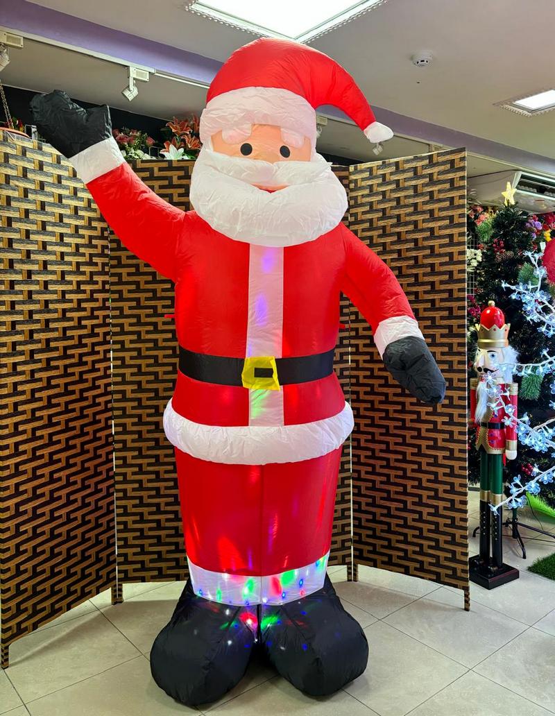 EL INFLABE DE SANTA SALUDA. es un muñeco de Navidad de 1.90 mts de alto ( 8 PIES) x 45 de ancho aprox. con luces Led incorporadas.