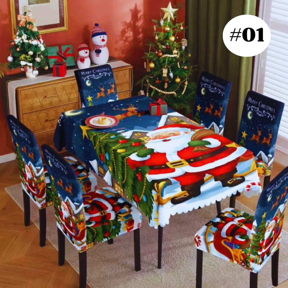 Dale a tu hogar el toque festivo que merece con este elegante juego de comedor navideño para 6 puestos. Incluye un mantel decorativo y 6 forros para sillas, confeccionados en tela 100% de alta calidad, suave, resistente y fácil de lavar.