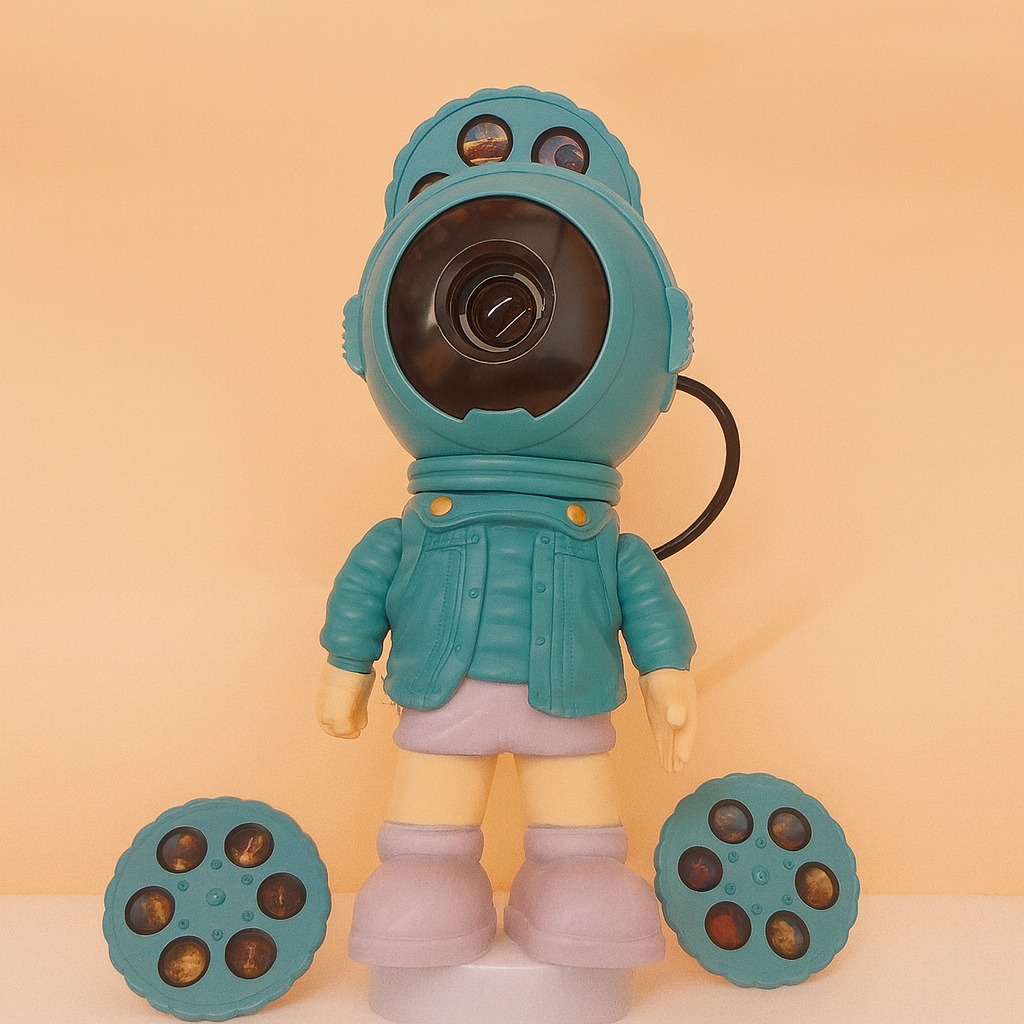 Diseño de astronauta con cabeza giratoria (normalmente 360°) para ajustar el ángulo de proyección.
