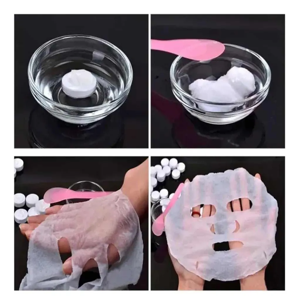 - Uso: Se expanden al sumergirlas en un líquido (como esencia, tónico, leche o jugo de frutas) para crear una mascarilla facial personalizada (DIY).