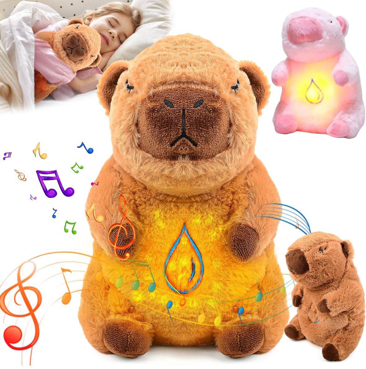 El capibara que respira es un juguete de peluche que imita el movimiento de respiración para ayudar a calmar y relajar a niños y adultos. Algunos modelos también incluyen sonidos de latidos del corazón o música relajante. Estos peluches están diseñados para proporcionar una experiencia sensorial calmante, ideal para reducir la ansiedad y facilitar el sueño.