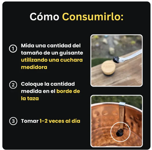 Paso 1: Utilice la cucharadita provista y tome una cantidad de Shilajit del tamaño de un guisante