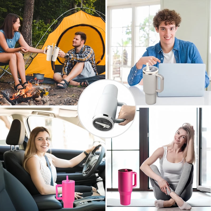 Termo Tipo Stanley 1200ML de 40 onzas cuenta con una pajilla plegable desmontable, una tapa de silicona a prueba de fugas y un pico extraíble, ofreciendo durabilidad ecológica con materiales plásticos y de silicona aptos para alimentos. Su diseño versátil se adapta a las necesidades de accesorios de barra y utensilios de bebida.