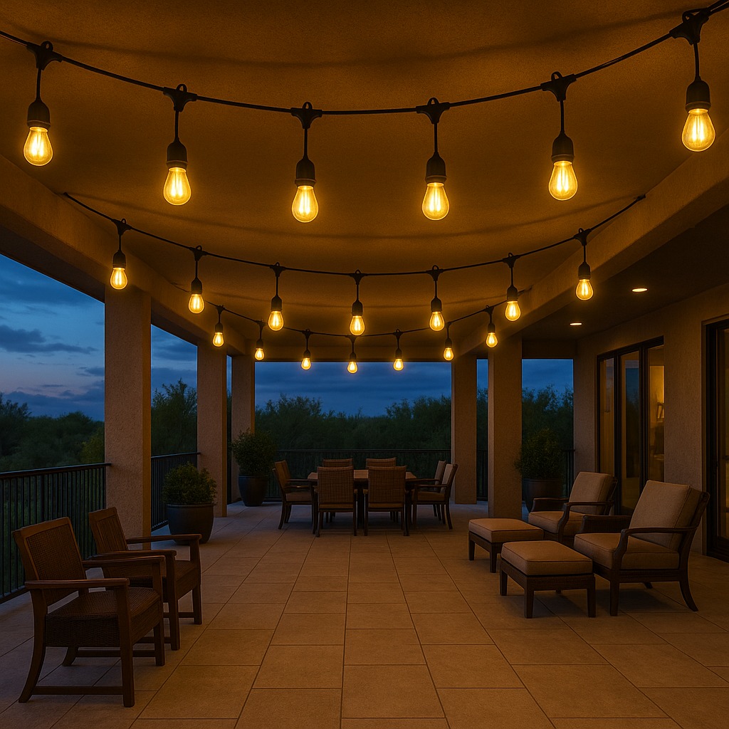 Se utiliza para crear un ambiente cálido y decorativo, ideal para espacios interiores o exteriores cubiertos.