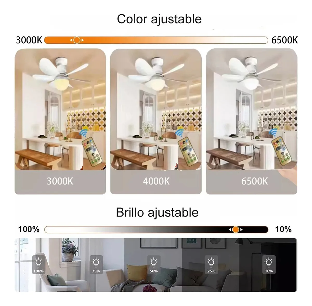 Ventilador de techo con iluminación: este ventilador de techo es muy potente. Está hecho de materiales duraderos de alta calidad como abs, PC y nylon. El motor está hecho de alambre de cobre puro, que no solo tiene una gran velocidad del viento y un buen rendimiento silencioso, sino que también tiene una larga vida útil.Luces: el color y el brillo de los LED incorporados se pueden ajustar, hay tres colores y diferentes brillo, se puede ajustar por sí mismo de acuerdo con el entorno.Ventilador: el control remoto puede controlar el ventilador. Puede encender / apagar o cambiar la velocidad del ventilador a través del control remotoDiseño: diseño de 6 hojas de ventilador, fácil de desmontar y limpiar, es tanto una luz como un ventilador, se puede usar el ventilador cuando hace calor, se puede quitar la hoja del ventilador cuando hace frío y usarlo solo como una bombilla, y la luz del ventilador utiliza un soporte estándar de luz roscado e27, que se puede instalar fácilmente en la base de cualquier tornillo e27.